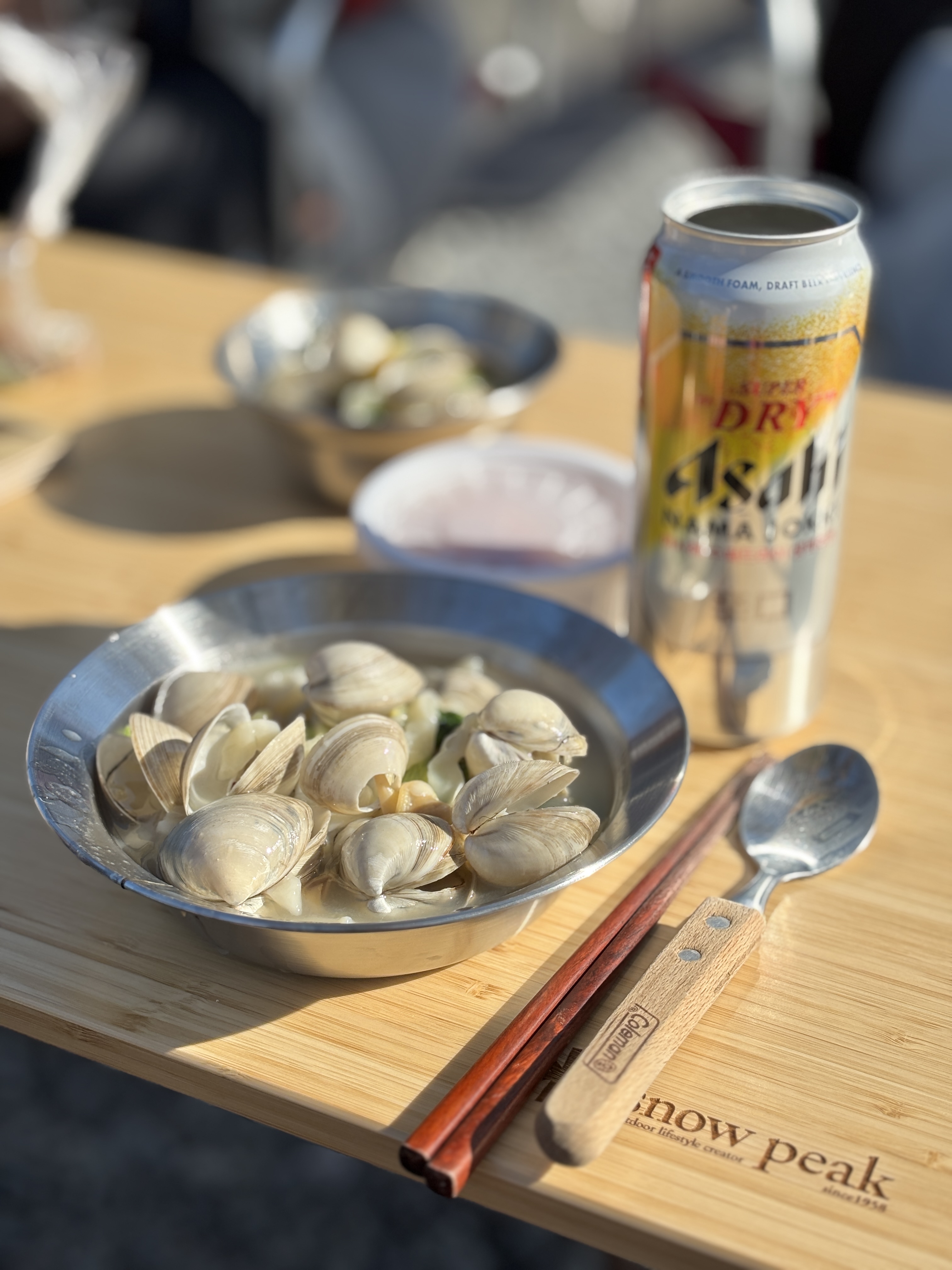 캬하 동죽칼국수에, 맥주에, 스노우피크 라이트뱀부 까지 이것이 럭셔리 캠핑의 맛인가 싶다