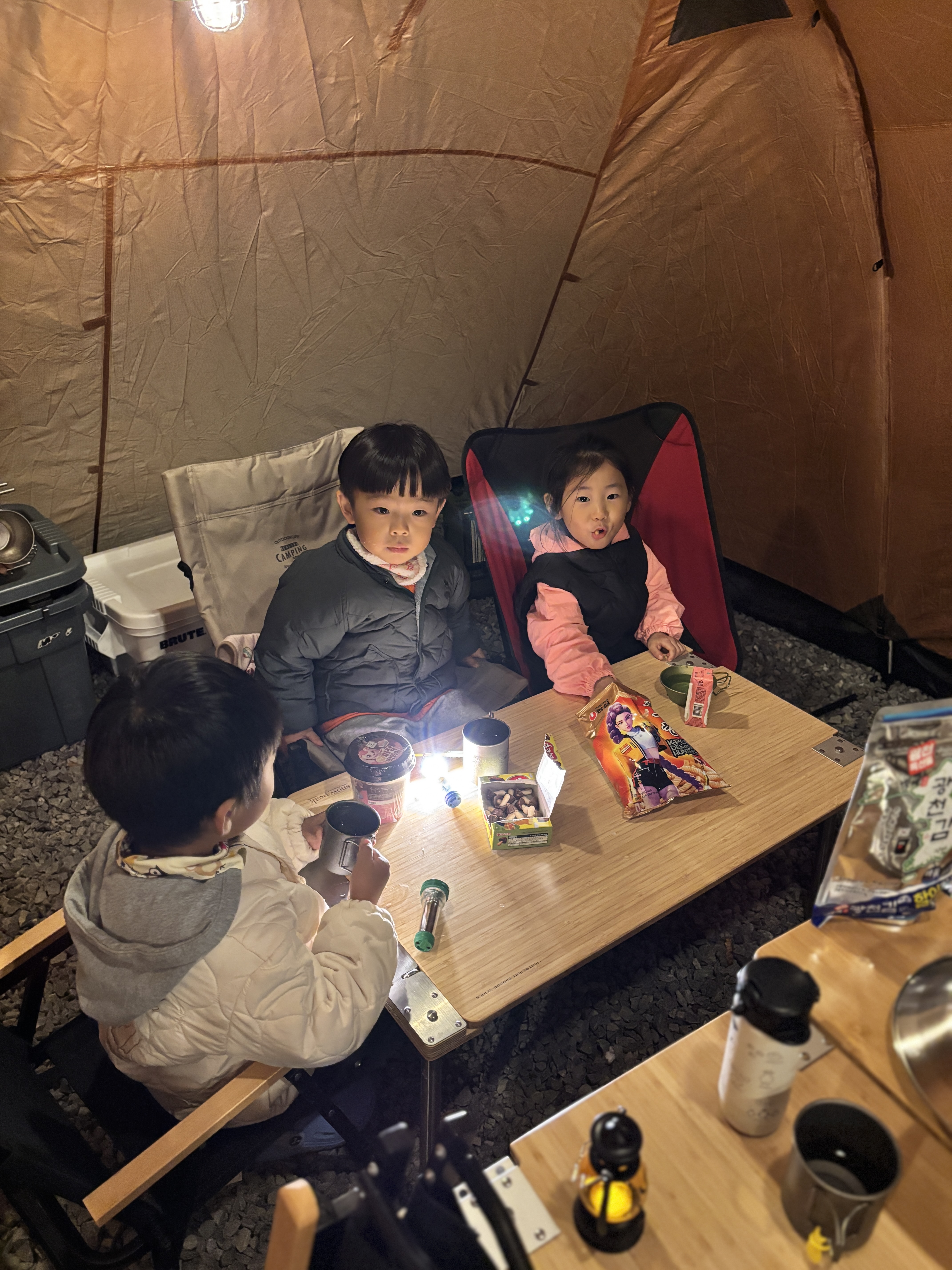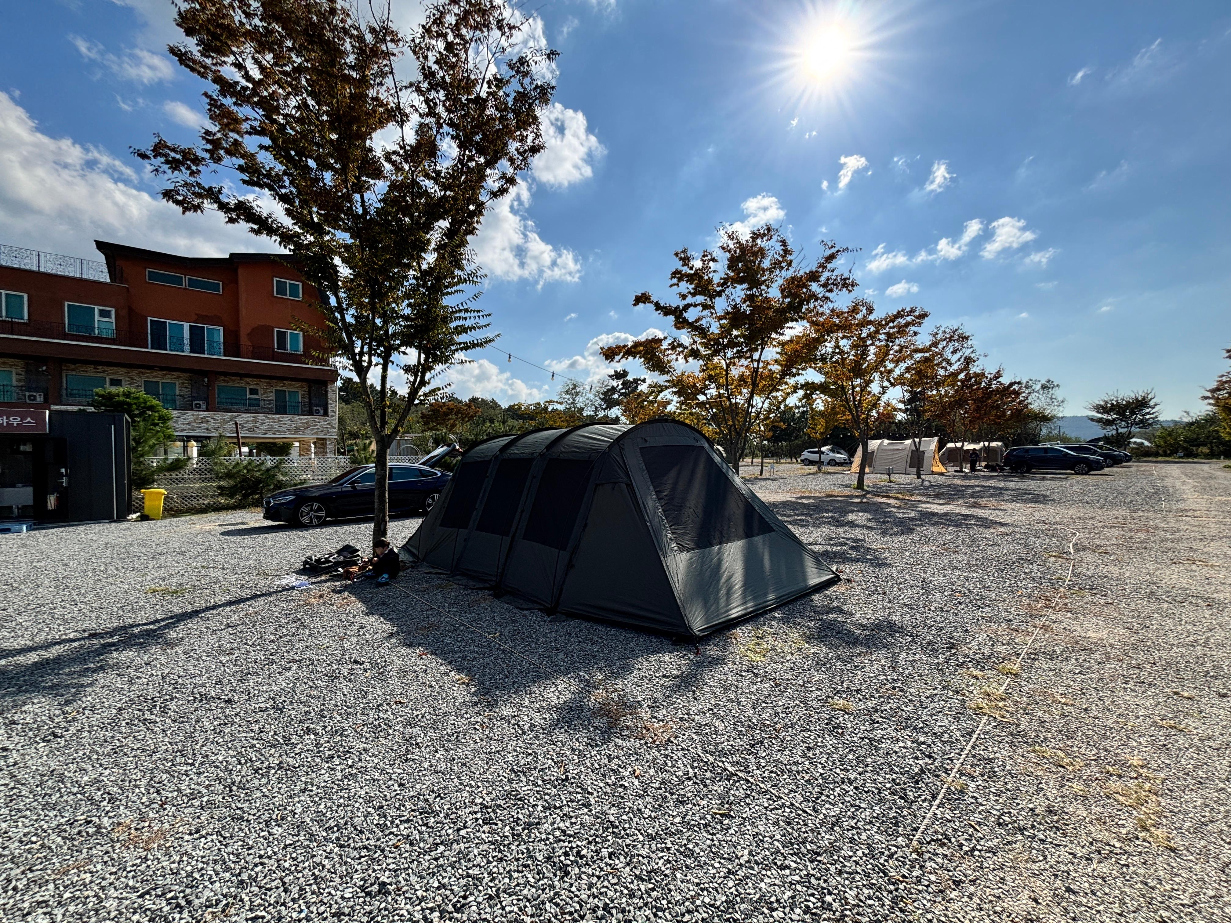 그렇게 두세시간정도 지나니 나머지 두집도 다 도착해서 각 집텐트와 공용쉘터 하나까지 총 4동의 텐트가 꾸려졌다 ㅎㄷㄷ